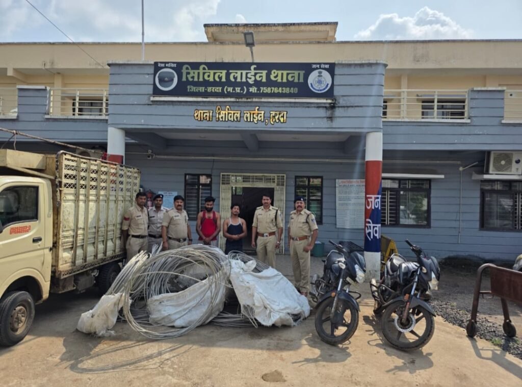 हरदा: सिविल लाइन पुलिस ने किया बड़ा खुलासा; 24 घंटे में बिजली के तार चोर गिरफ्तार, लाखों का माल जब्त