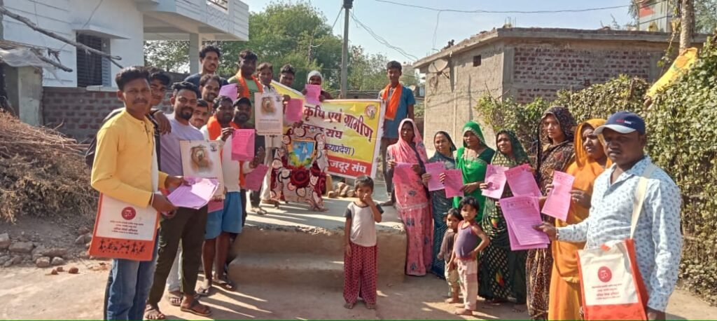 जिसके बाद में भारतीय मजदूर संघ के 70 वे स्थापना दिवस में प्रवेश पर 1दिसंबर से 15 दिसंबर तक श्रमिक संपर्क अभियान चलाया जा रहा है। जिसमें जनसंपर्क कर सभी को संगठन के बारे मे जानकारी दी गई। जिसमे ग्रामीणों की समस्याओं के बारे में जाना और शासन द्वारा हल कराने का आश्वाशन दिया गया।वही शासन की जनकल्याण कारी योजनाओं चल रही है उनसे अवगत कराया गया।वनवासी कृषि एवम ग्रामीण मजदूर संघ जिला हरदा जिला अध्यक्ष गणेश प्रसाद मर्सकोले, जिला कोषाध्यक्ष दुर्गेश धुर्वे, ब्लाक सदस्य वीरेंद्र खंडे, हरेश धुर्वे, अनिल धुर्वे, शिवनारायण उईके, चंद्रशेखर,मनीष,दिनेश, रघुवीर, अभय, हर्ष,दुर्गेश, शुभम,अर्जुन, रामबती बाई, रेखा बाई, पुष्पा बाई, कृष्णा बाई और अन्य सदस्य सम्मलित हुए।