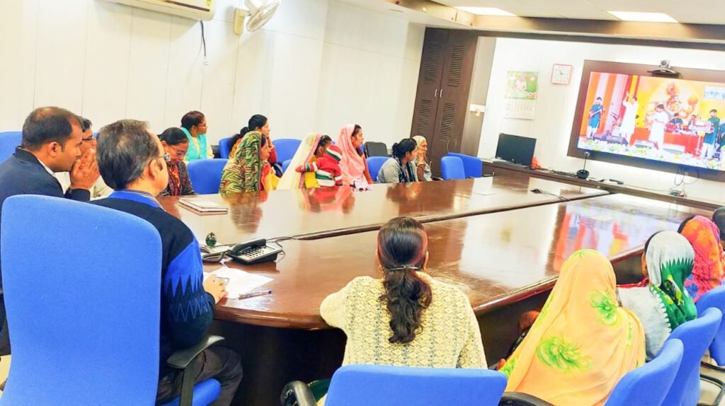 हरदा। मुख्यमंत्री डॉ. मोहन यादव ने बुधवार को भोपाल के लाल परेड मैदान से जनकल्याण पर्व और मुख्यमंत्री जनकल्याण अभियान का शुभारंभ किया। इस दौरान मुख्यमंत्री डॉ. यादव ने लाड़ली बहना योजना की 1.28 करोड़ हितग्राही बहनों के खातों में 1572 करोड़ रूपये की राशि अंतरित की। इसी कार्यक्रम में उन्होने सामाजिक सुरक्षा पेंशन के हितग्राहियों के खाते में 334 करोड़ रूपये की राशि भी अंतरित की। इस अवसर पर अंतर्राष्ट्रीय गीता महोत्सव कार्यक्रम का आयोजन किया गया। हरदा में जिला स्तरीय कार्यक्रम कलेक्ट्रेट के एनआईसी कक्ष में आयोजित किया गया। इस दौरान भोपाल में आयोजित कार्यक्रम का सीधा प्रसारण भी देखा गया। कार्यक्रम में संयुक्त कलेक्टर सतीश राय,जिला कार्यक्रम अधिकारी महिला एवं बाल विकास संजय त्रिपाठी,उप संचालक सामाजिक न्याय विभाग कमलेश सिंह सहित लाड़ली बहनें और विभागीय अधिकारी एवं कर्मचारी उपस्थित थे।